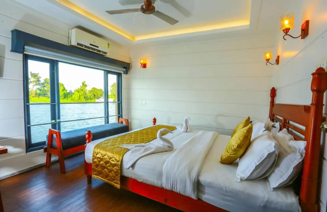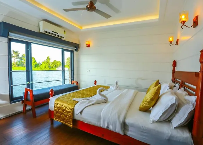 The botel is about 85 km from Cochin International airport and around a 25-minute walk from such cultural venues as Revi Karunakaran Museum. This Alappuzha hotel is merely a 6-minute walk from Nehru Trophy Finishing Point and very close to Houseboat Dock. The accommodation is situated about 6 km from Kathakali, while Alappuzha bus station lies around 5 minutes' walk away.